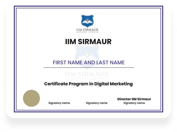 In the Certificate Program in Digital Marketing from IIM Sirmaur, you will master core digital marketing concepts, explore key strategies across SEO, SEM, social media, and content marketing, and develop data-driven campaign management skills. Learn to leverage analytics tools to optimize marketing efforts and drive engagement. Apply your knowledge in practical projects to build impactful, results-driven digital marketing campaigns.