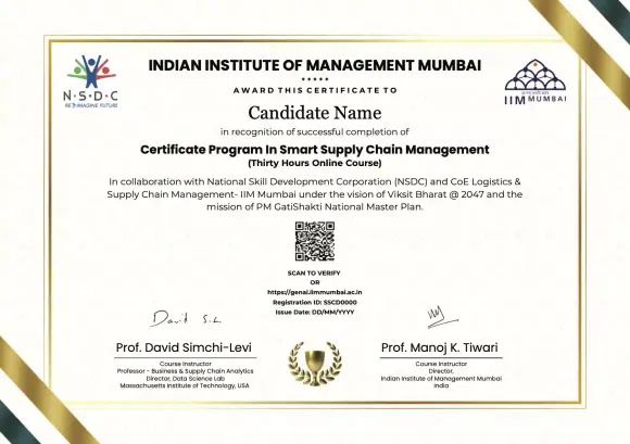 In the Supply Chain Management program from IIM Mumbai, you will master end-to-end logistics, optimize procurement strategies, and leverage data-driven decision-making. Gain expertise in inventory management, demand forecasting, and sustainable supply chain practices. Learn to design efficient supply chain solutions applicable to global business challenges.