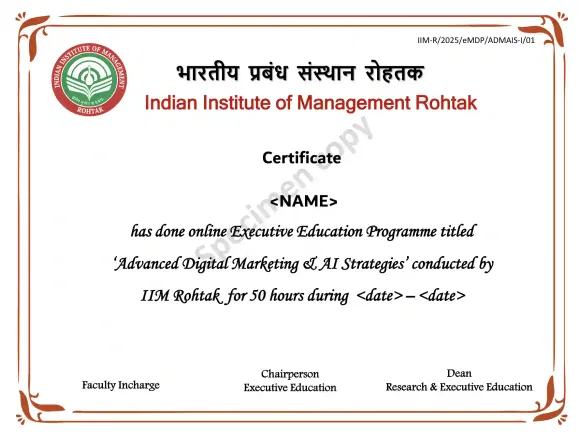 Receive a Certificate of Completion from IIM Rohtak, recognizing your achievement.