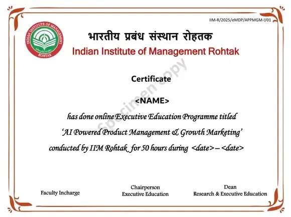 Receive a Certificate of Completion from IIM Rohtak, recognizing your achievement.