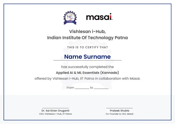 Go from zero to job-ready in AI/ML with beginner-friendly, industry-aligned curriculum from I-Hub IIT Patna, taught in Kannada, covering Python, data analysis, machine learning, and generative AI with hands-on projects. Built for beginners, designed to get you building real things fast.