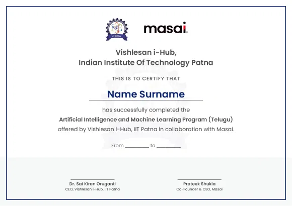 Begin your AI/ML journey with a beginner-friendly, industry-aligned curriculum from I-Hub IIT Patna taught in Telugu. Covering everything from Python basics to advanced topics like deep learning and generative AI, the program builds real-world skills through hands-on projects and expert-led learning.